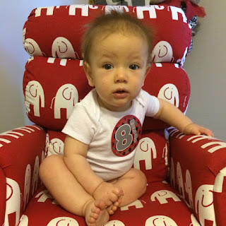 7 months old! His face is sunburned in this picture because Adam forgot to put sunscreen on him when they went to watch the Blue Angels in Tuscaloosa.